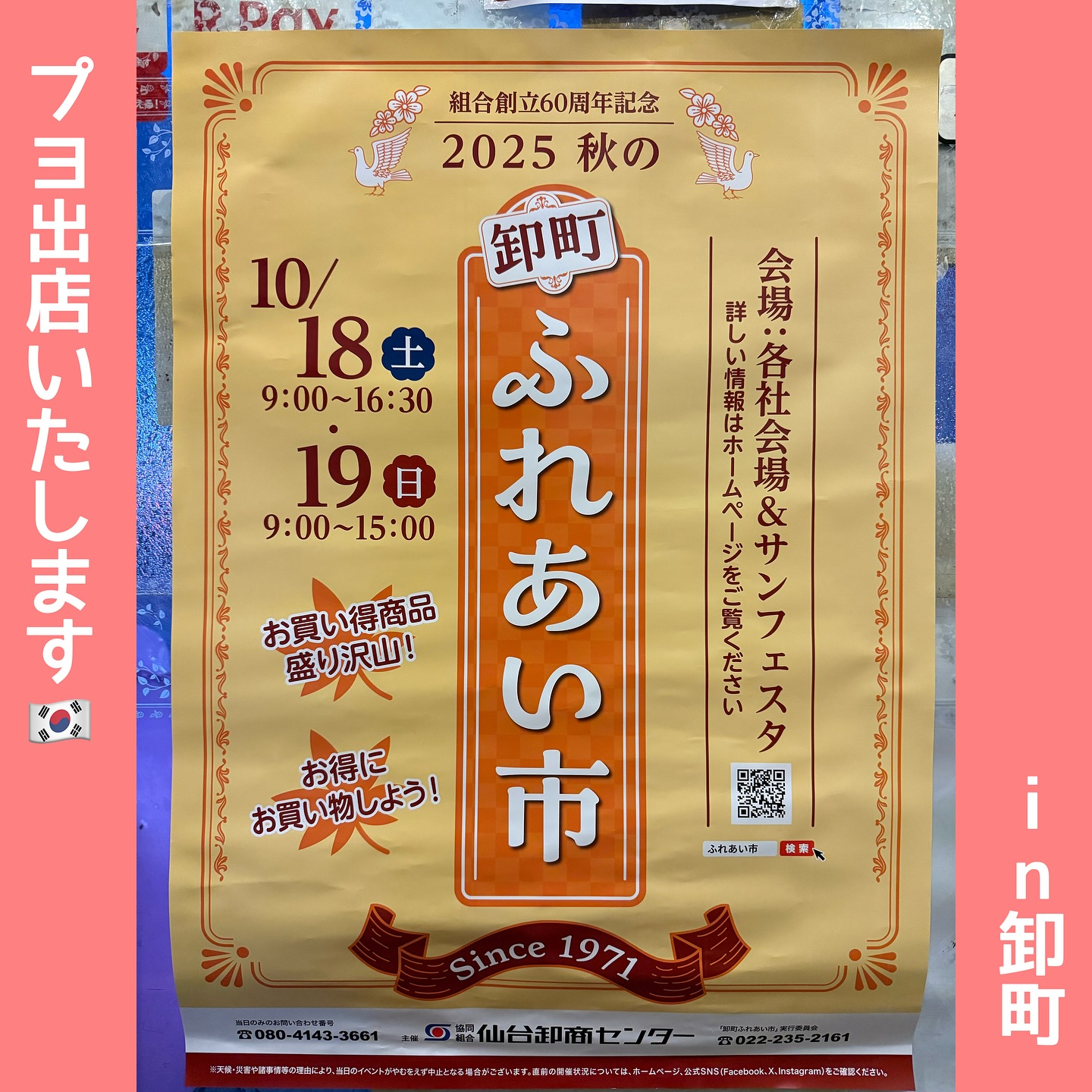 안녕하세요:)안녕하세요:) プヨ東口店です! 卸町で開催される が 今週末の10月18日(土)、19日(日)に行われます 人気商品のチヂミや10円パン等揃えて当店も出店いたします 張り切って準備いたしますが、お求めの商品がある場合は […]